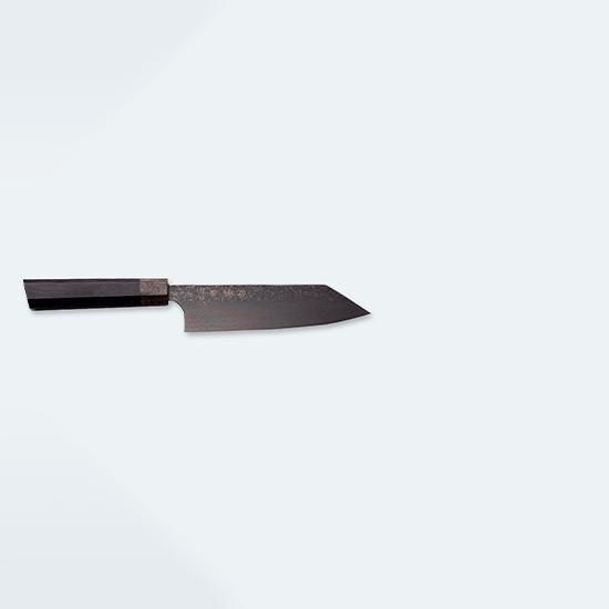 100周年記念モデル「瑞雲」をグレードアップさせた最高級モデル。瑞雲が持つ美しさと機能をさらに極め、漆黒の切れ味を実現。洗練された黒いダマスカス模様は使う人の心を躍らせ、料理も一層引き立つことでしょう。三代目社長河村充泰の包丁への想いと技術を形にした渾身のアート。